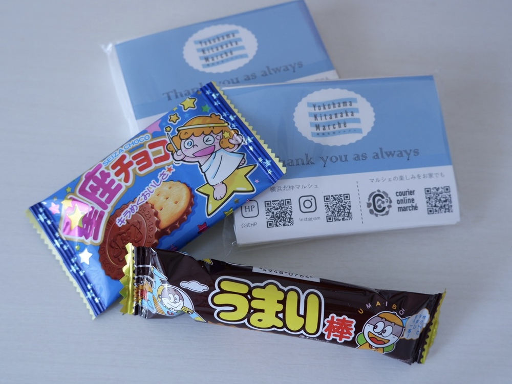 購入金額に応じて抽選券をいただきました。3枚集めると運営局のテントでくじ引きができます。くじ引きで当たったお菓子は数種類から選ぶことができるので、お子様と参加しても盛り上がりそうです。※抽選会の開催は不定期となります。