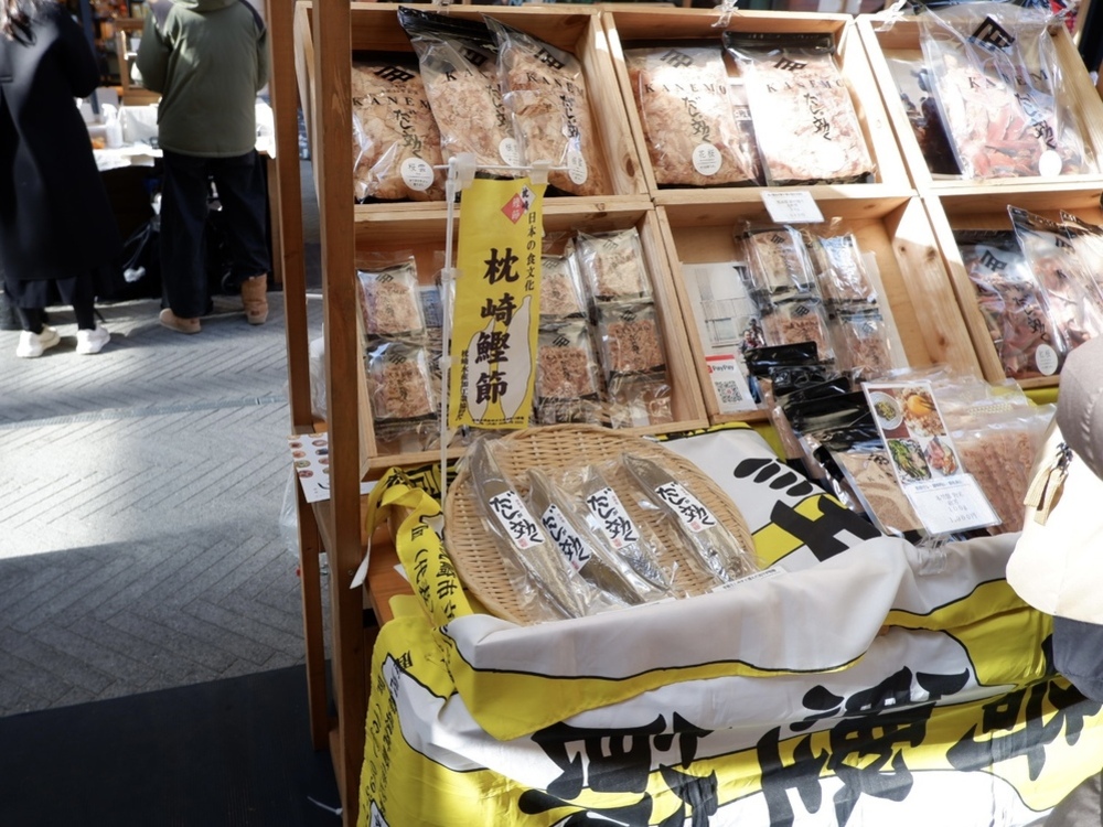 枕崎の鰹節が直接購入できるなんてうれしい!はっぴを着たお姉さんから、荒本節と枯れ本節の違いや、お出汁をとる時は厚削りがおすすめなど、知らない鰹節の世界を教えていただきました。