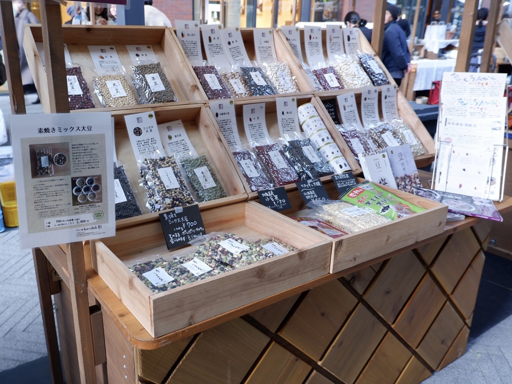 北海道産の豆を販売されていた「べにや長谷川商店」さん。北海道からはるばるいらっしゃったそうです!
