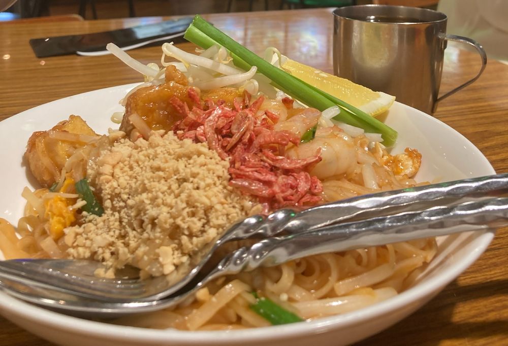 もちもちとした米麺に、甘じょっぱいタレと干しエビの旨み、絞ったレモンの爽やかさやナッツの香ばしさも絶妙なハーモニー。こちらもあっという間に完食しました。