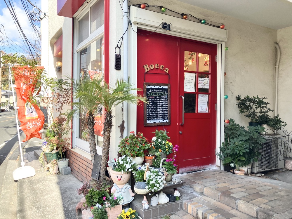 金沢文庫駅の西口から徒歩4分ほどのところにある、赤いドアが目印のお店です。