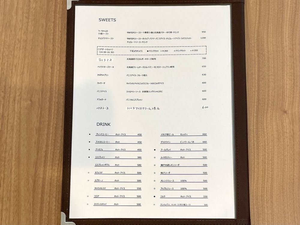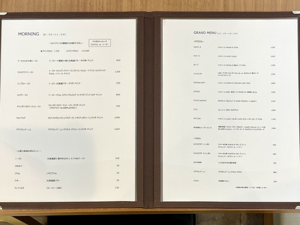 他にもトーストやパンが頂ける8:30〜11:00のモーニング、平日以外の11:00〜16:30のグランドメニュー、スイーツ、ドリンクなど豊富なラインナップです。
