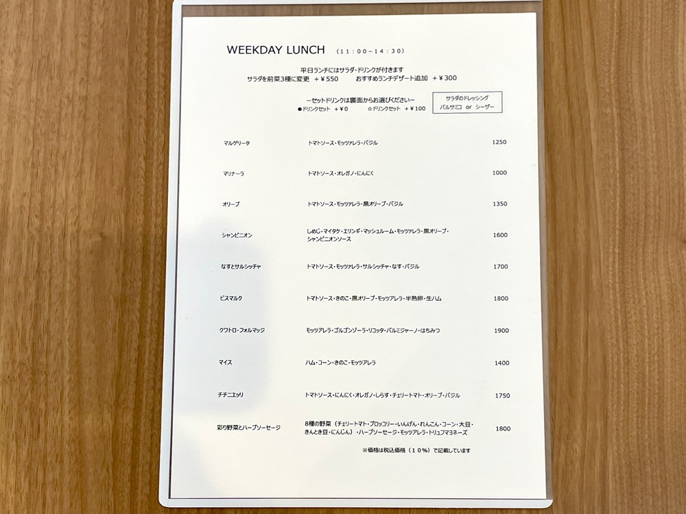 メニューを見てみると、そこにはたくさんの種類のピッツァが。