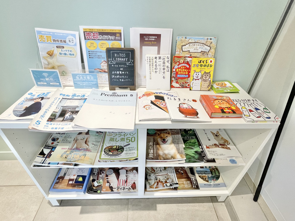 雑誌や絵本も置かれていて、大人はもちろん子どもも楽しめる工夫がされています。