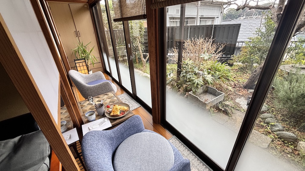 一人で訪れた今回は、庭を眺めながらゆったり過ごせる縁側席を選びました。