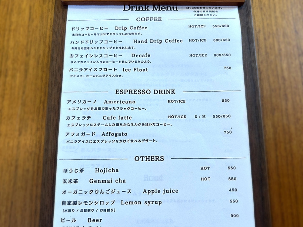 コーヒーは、カフェであり、コーヒー豆焙煎・卸販売もされている元住吉の「mui」さんの豆が使われています。