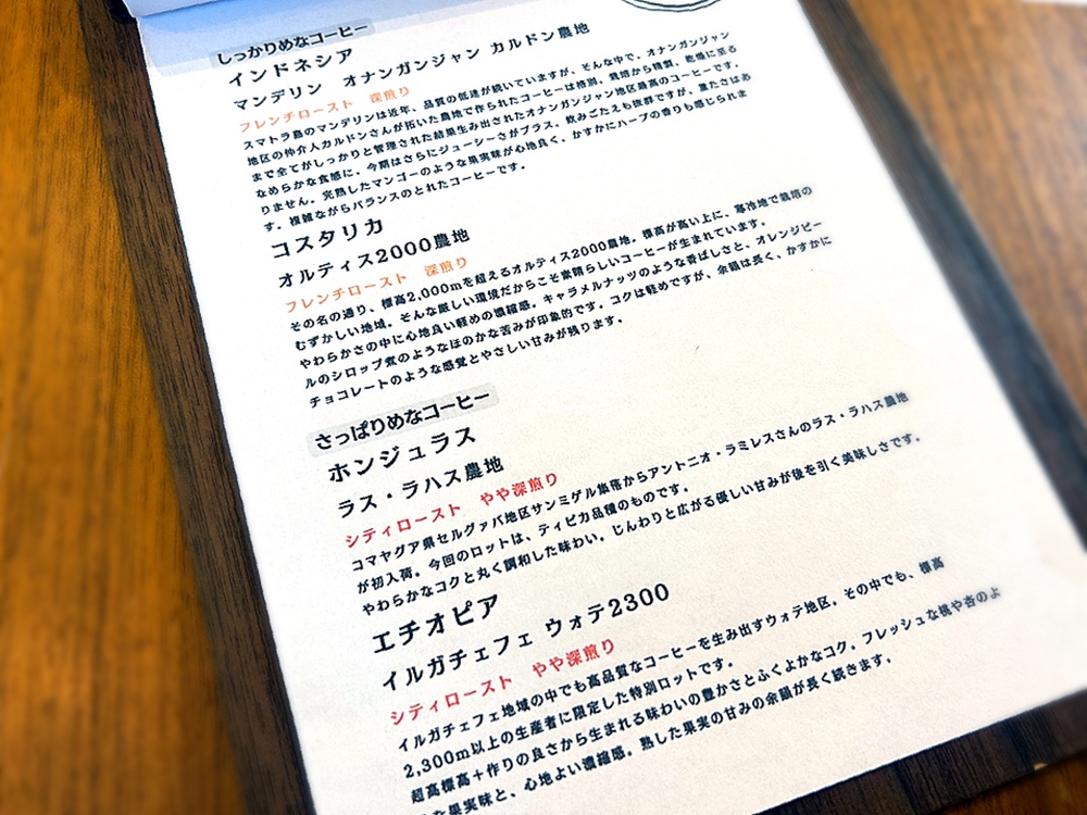 豆の風味、ローストの違いも詳細に書かれているので、気分にぴったりの味が見つかりそう。