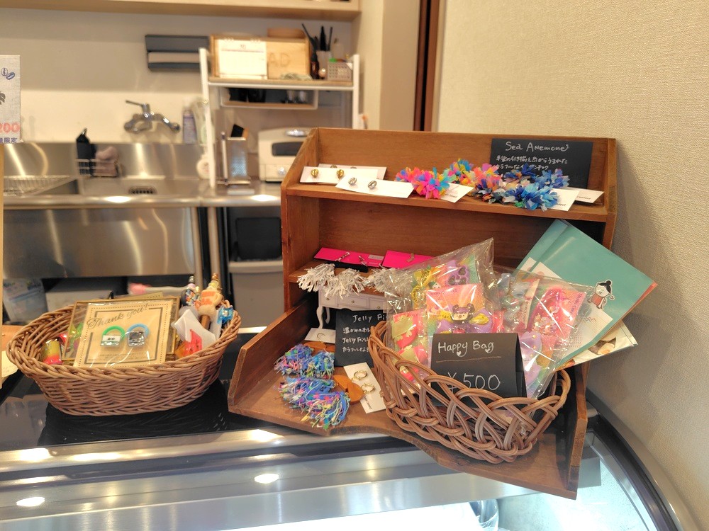 レジの横にはかわいい雑貨やアクセサリーが並んでいます。