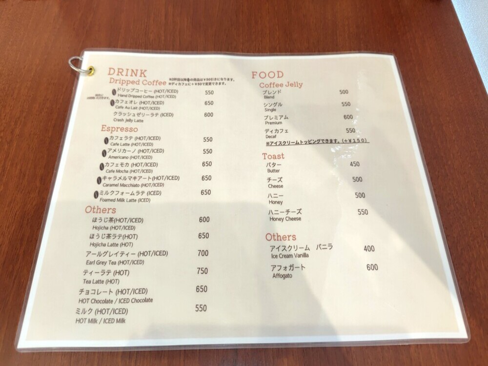 今回はクラッシュゼリーラテとバタートーストを注文することにしました。