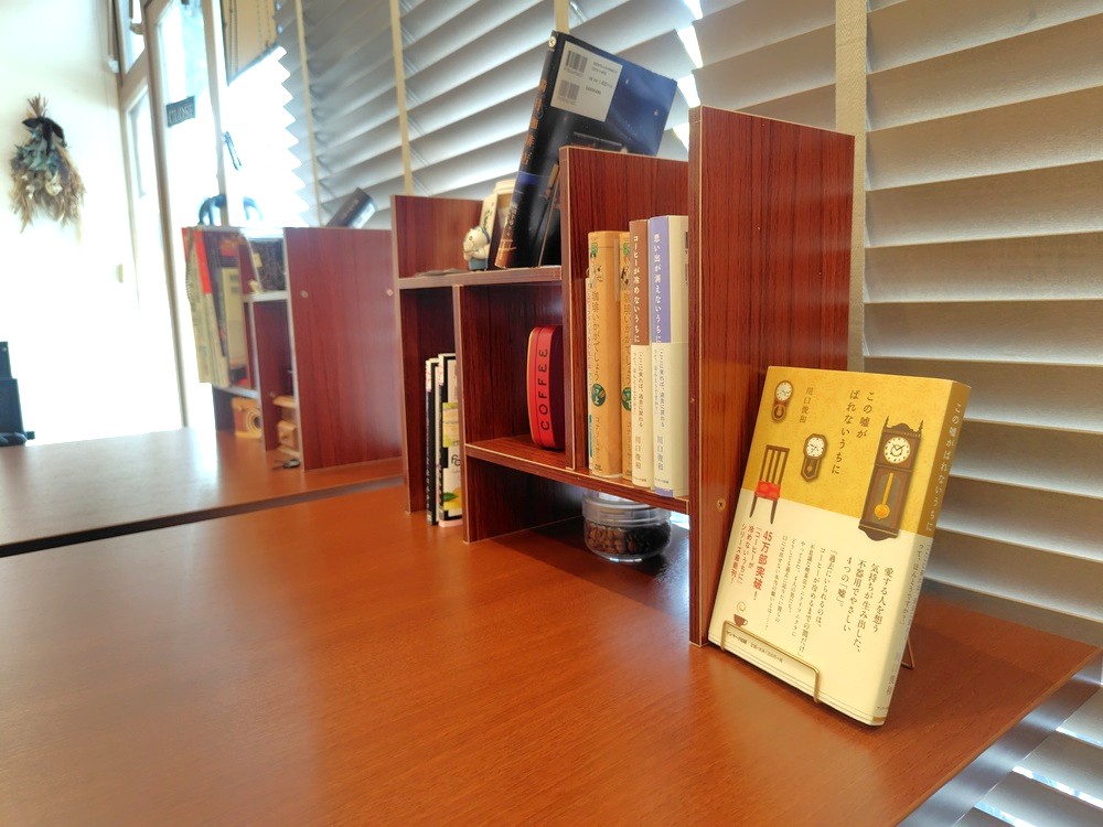 おひとり様用の席にはカフェやコーヒーに関する本とお店の雰囲気を彩る飾り物が置いてあります。次に来るときは本を読みながらまったりするのもいいな、と想像を膨らませていました。