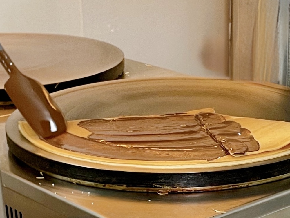 通常のクレープに使うチョコレートシロップではなく、製菓用のチョコレートを溶かしているため「ホントノチョコ」と呼ばれています。