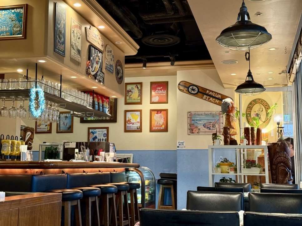 店内は木のぬくもりとハワイを感じるインテリアとBGM。都会の中にありながらもどこか海辺のリゾートで私たちを優しく受け入れてくれるような雰囲気があります。