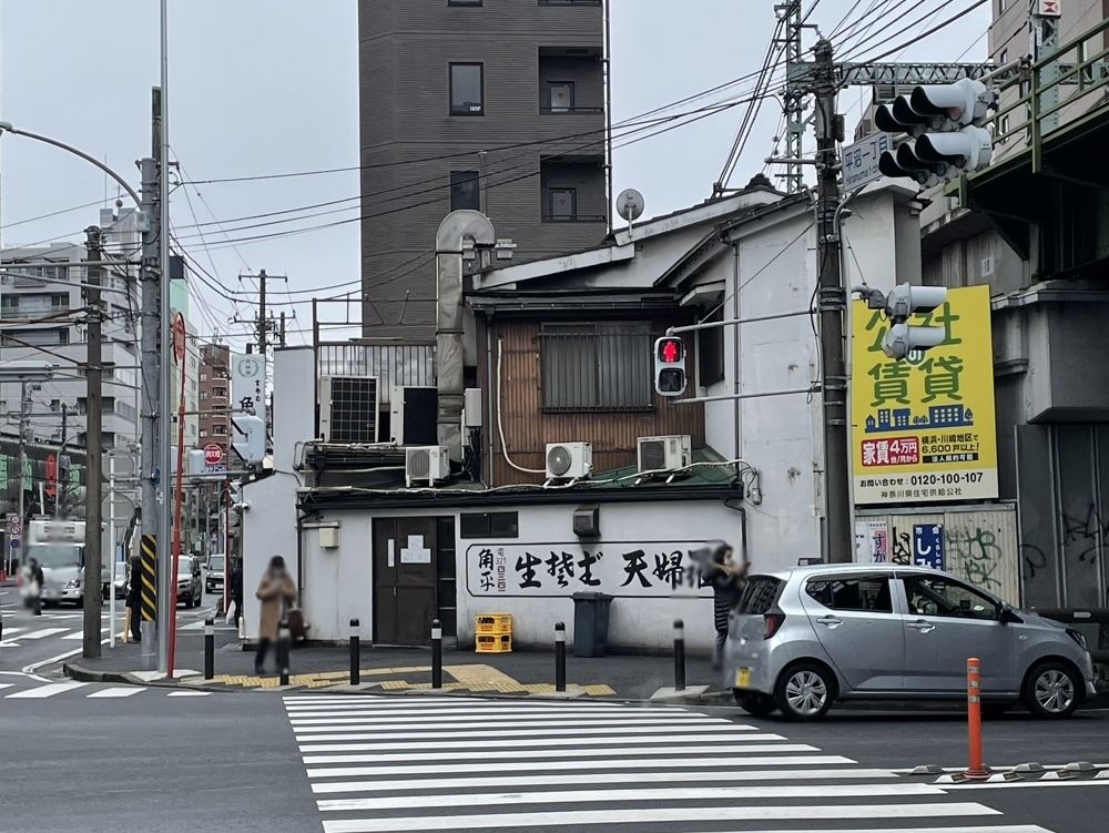 横浜駅東口から歩き、平沼一丁目の交差点に差し掛かったときに向かいに見える、歴史がありそうな「角平」の看板がいつも気になっていました。