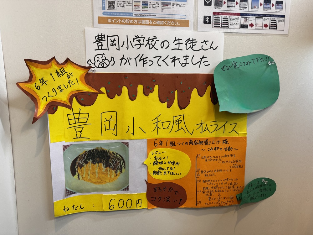 そこで、地元の小学生たちが授業の一環として、商店街にある、この「オムライス研究所」と一緒に地域活性化のお手伝いができないか?と考え、店主さんと協力して新メニューを考案、販売しました。