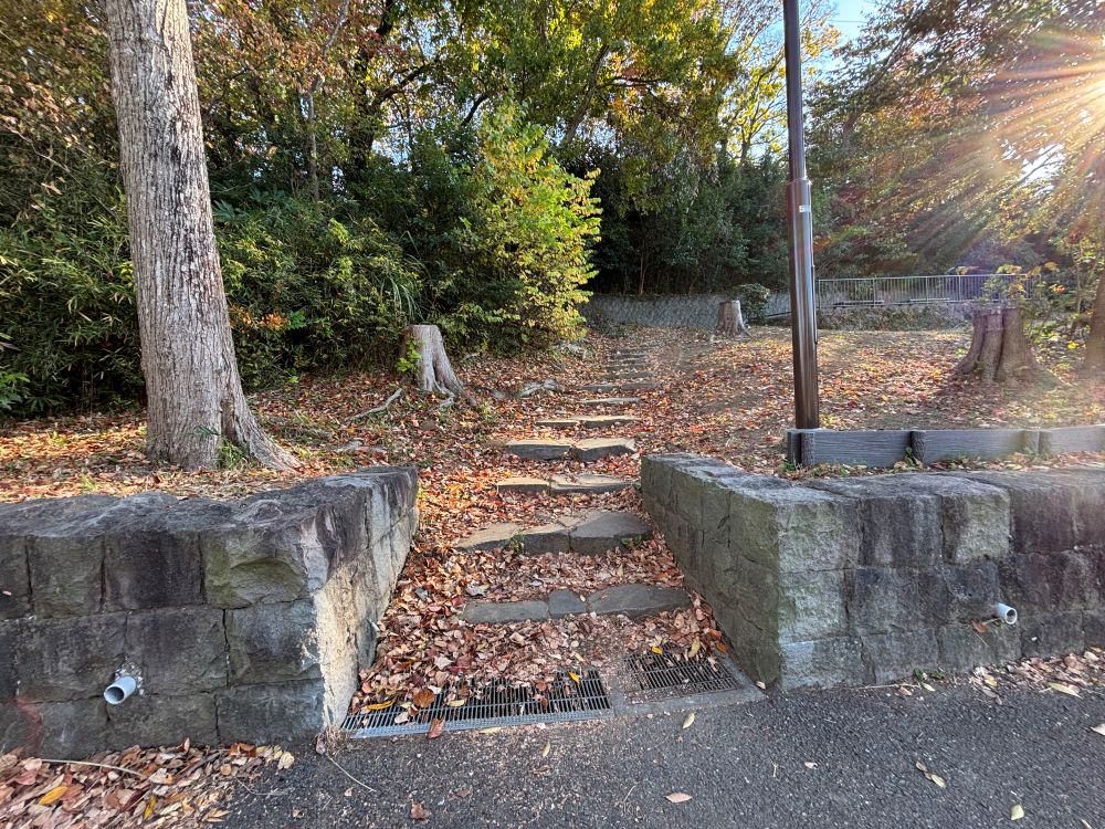 公園の横には小さな丘のような場所があり、木々に囲まれた自然スポットになっています。