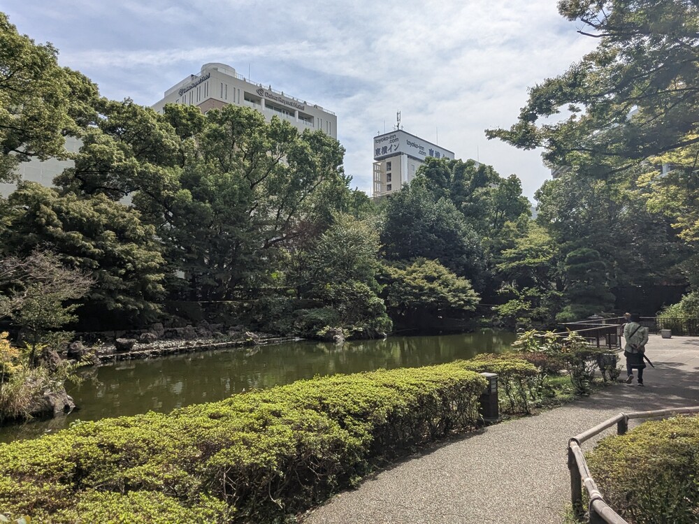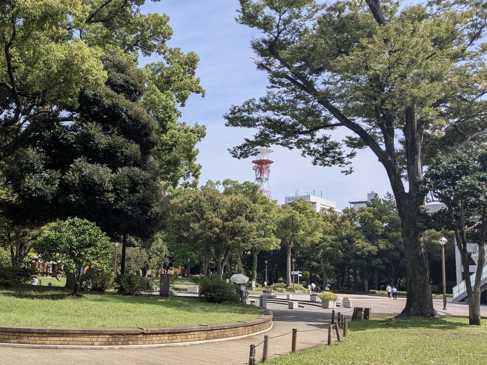 また、公園内には日本庭園「彼我(ひが)庭園」があり、蹲踞(つくばい)や水琴窟(すいきんくつ)といった伝統的な造園技術が施されており、静寂の中で水音に耳を傾けるひとときは、まさに都会のオアシスです。
