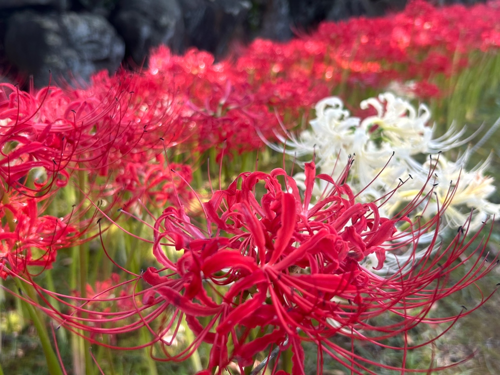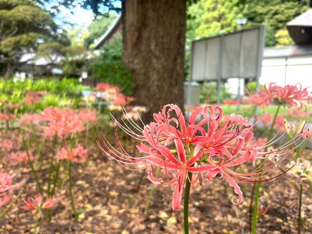 門前に差しかかると、遠目からでも色鮮やかな彼岸花が見えてきて、思わず早足になって
