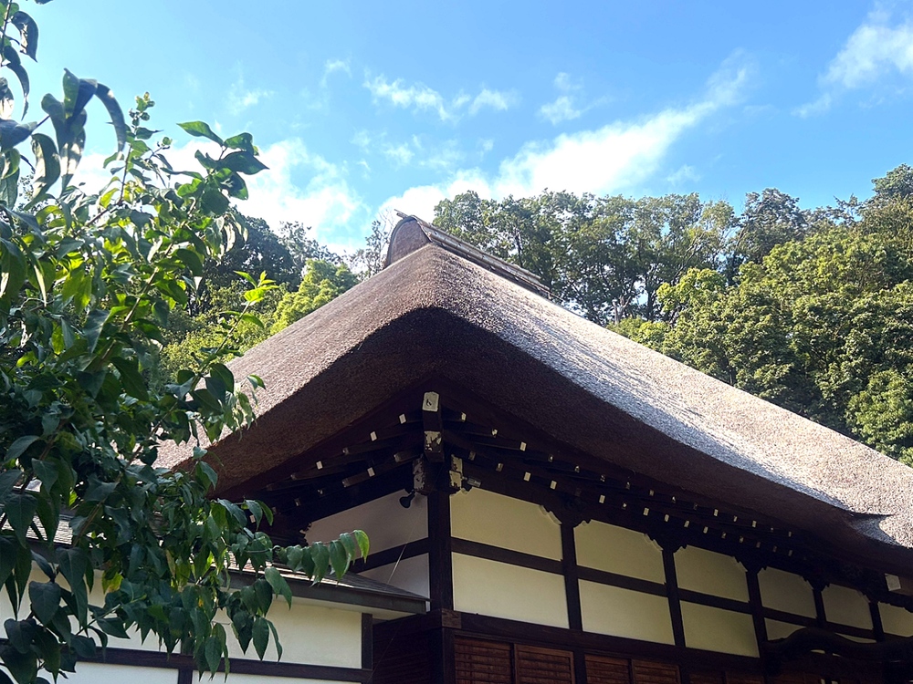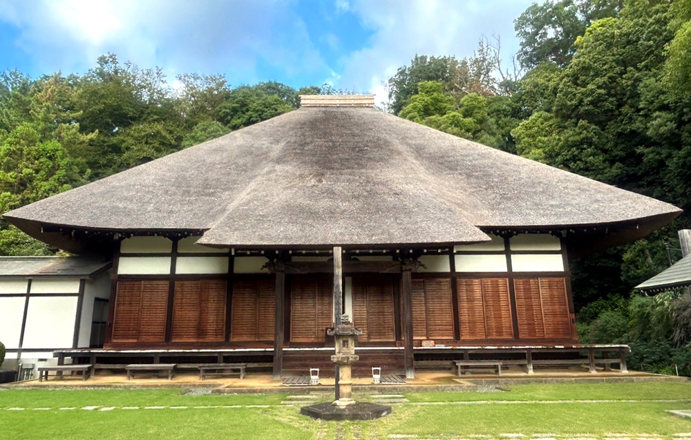 西方寺さんのもう一つの見どころは、立派な茅葺きの屋根を持つ本堂。