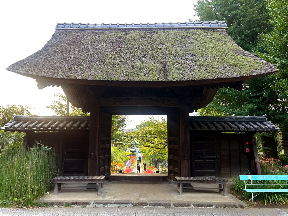 山門、鐘楼堂も茅葺です。本堂とあわせ、どちらも横浜市指定文化財に指定されています。
